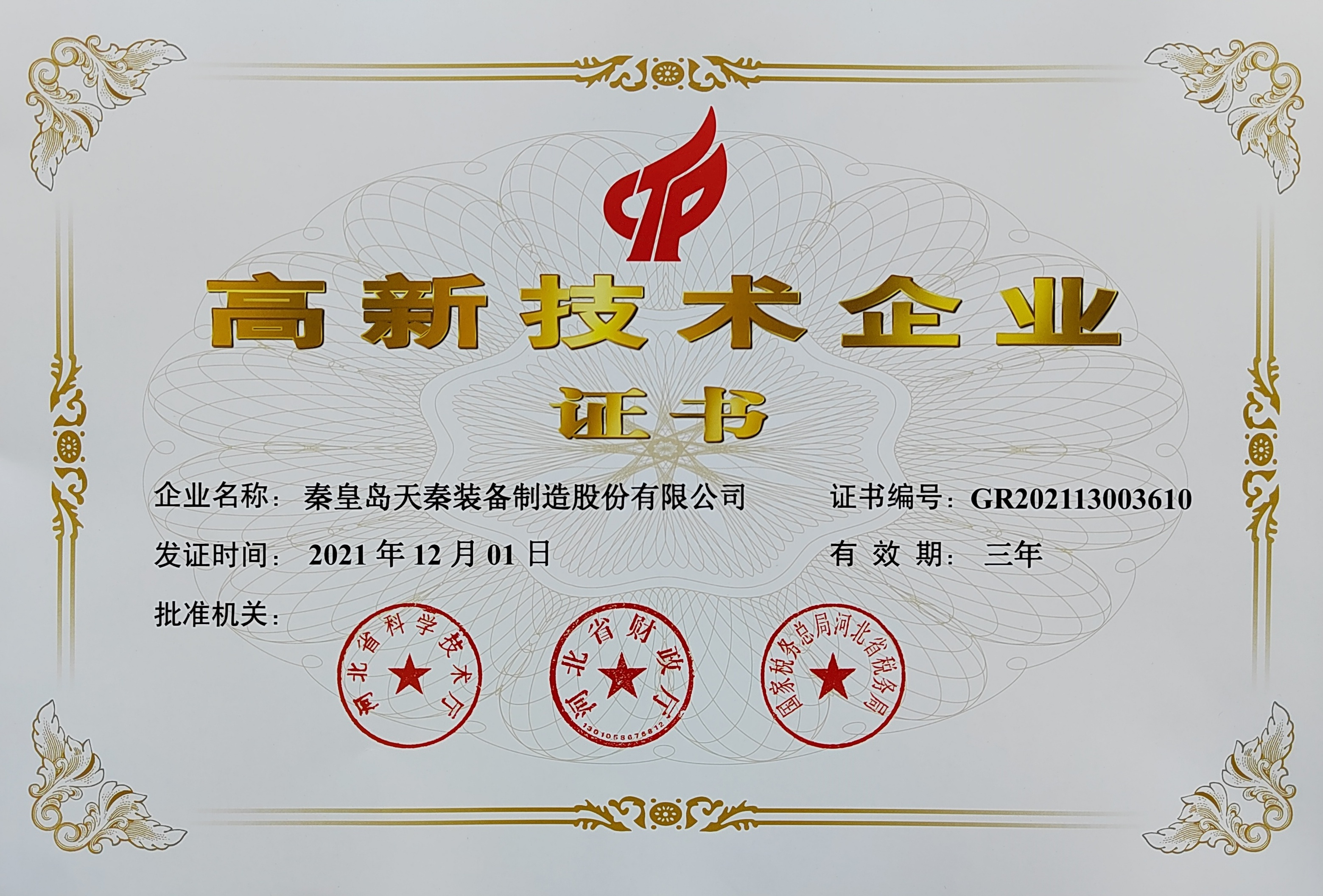 • 秦皇島天秦裝備制造股份有限公司創(chuàng)立于1996年,總部位于河北省秦皇島市經(jīng)濟技術(shù)開發(fā)區(qū),秦皇島廠區(qū)占地4萬平方米,擁有3萬平方米的標(biāo)準(zhǔn)廠房、辦公樓和工程技術(shù)研發(fā)中心;分部天津廠區(qū)位于天津市靜海經(jīng)濟開發(fā)區(qū),占地2萬平方米,擁有1.6萬平方米標(biāo)準(zhǔn)廠房。 公司通過了GB/T 19001質(zhì)量管理體系及GB/T 24001環(huán)境管理體系認證,是國家高新技術(shù)企業(yè)、河北省軍民融合產(chǎn)學(xué)研用創(chuàng)建基地,建有省級院士工作站。